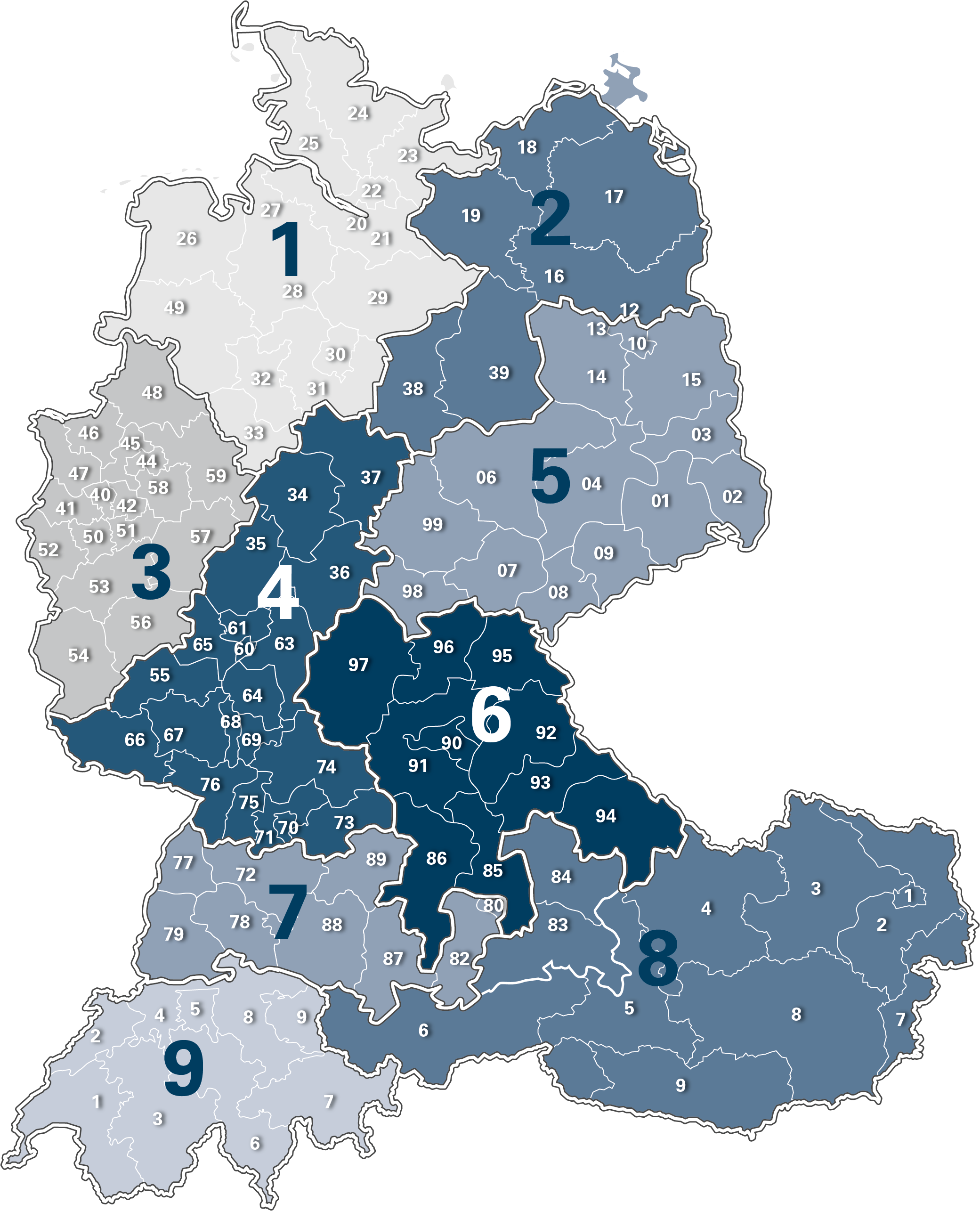 Tipp: Regionnummern auf der Karte entsprechen den Ansprechpartnern.