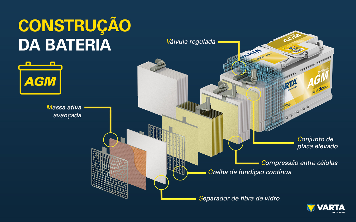 A função tradicional da bateria é bem conhecida: sem ela, o veículo não arranca. Além do motor de arranque, outros componentes como as velas de ignição, as velas de incandescência, os faróis e os sistemas eletrónicos também necessitam de energia elétrica. Mas como é que uma bateria é construída e como funciona exatamente?